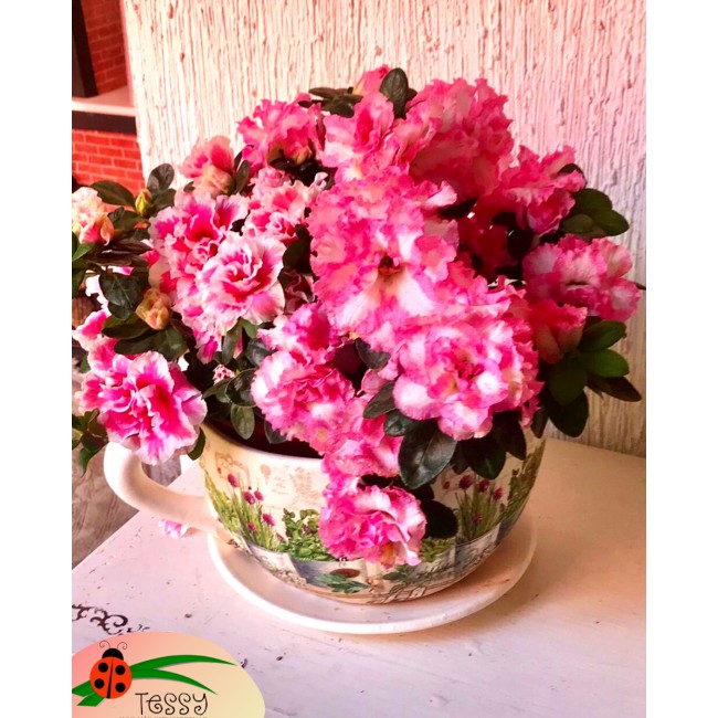 Hermosa taza gigante con Begonias, flor puede variar dependiendo temporada
