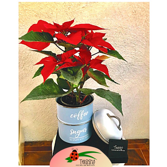 Que tu regalo tenga mucha vida, Bote de aluminio con tapa y una hermosa nochebuena.