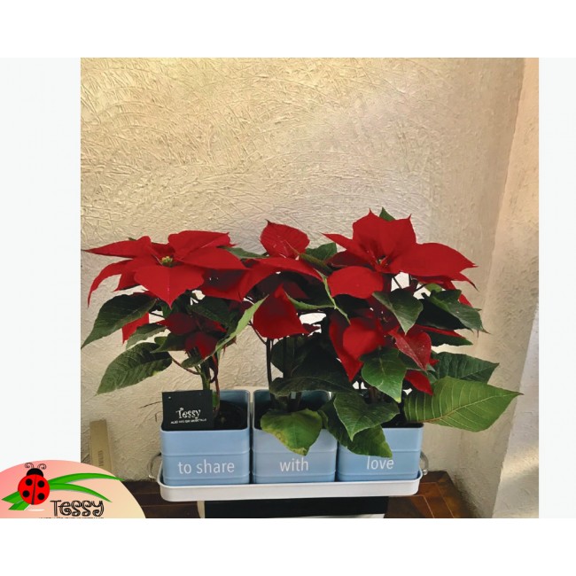 Hermosas macetas de aluminio con nochebuenas.